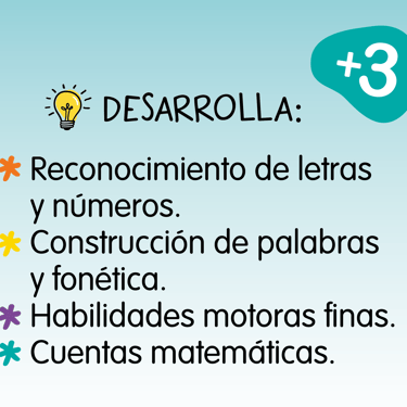 También incentiva el reconocimiento de números, símbolos matemáticos, logrando sacar cuentas matemáticas a través del juego, desarrollando las habilidades motoras finas.