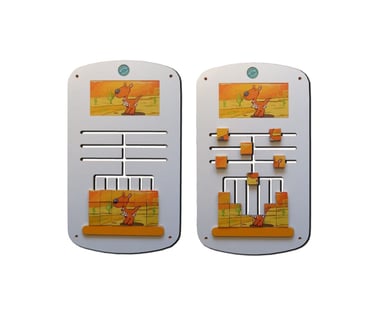 Incluye: 1 panel con 18 fichas integradas; 1 imagen en la parte superior; 4 separadores para la colocación en pared; 4 tornillos y 4 tacos o tarugos para pared.