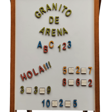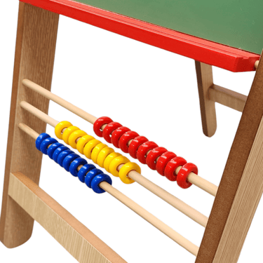 Pizarra verde: Uso para tizas / Abacos con centena identificados con los colores primarios / Porta tizas plegable.